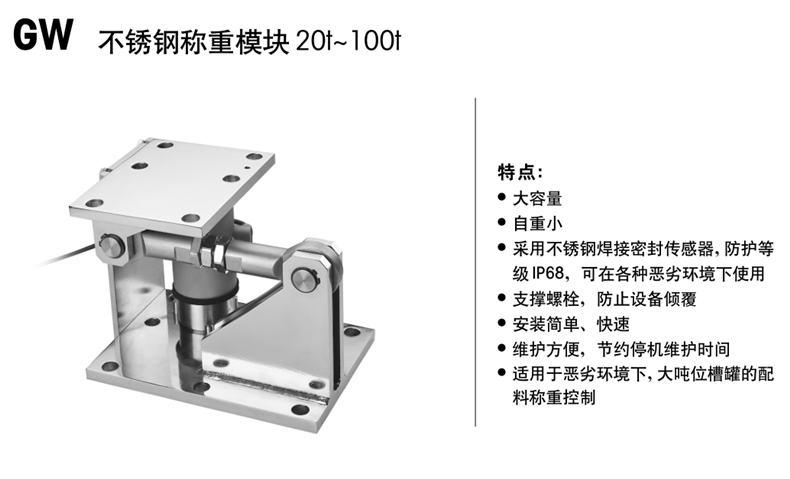 GW模块和GWA模块均选用GD不锈钢焊接密封传感器,但GWA上下顶地板材料为碳钢,表面镀镍,GW为不锈钢,此两款都是动静载两用。