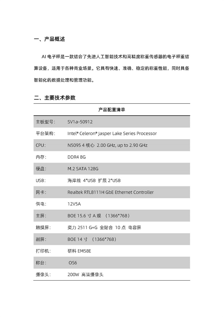 AI 电子秤是一款结合了先进人工智能技术和高精度称重传感器的电子秤重结算设备,适用于各种商业场景。它具有快速、准确、稳定的称重性能,同时具备智能化的数据处理和管理功能。