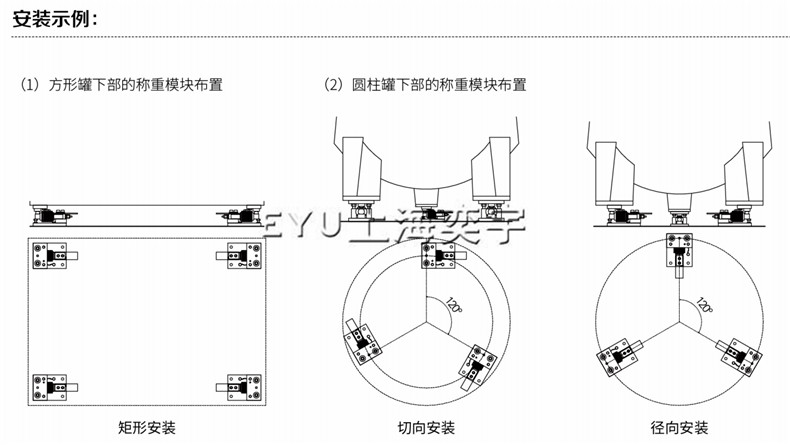 在一个称重系统中,使用一只固定式称重模块,一只半浮动式称重模块,其余用全浮动式称重模块。标准组合为: