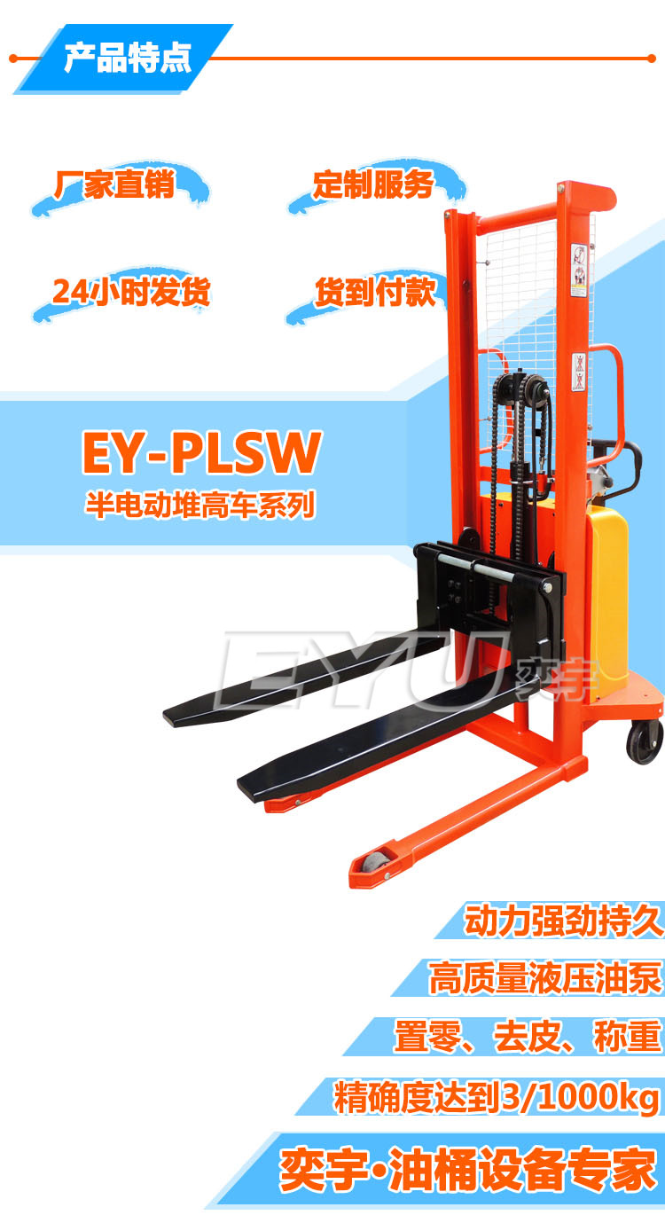 产品型号:EY-PLSW系列(PLSW1016/20/25/30/35-A/B)A款和B款支腿和货叉不同,仪表不同可选