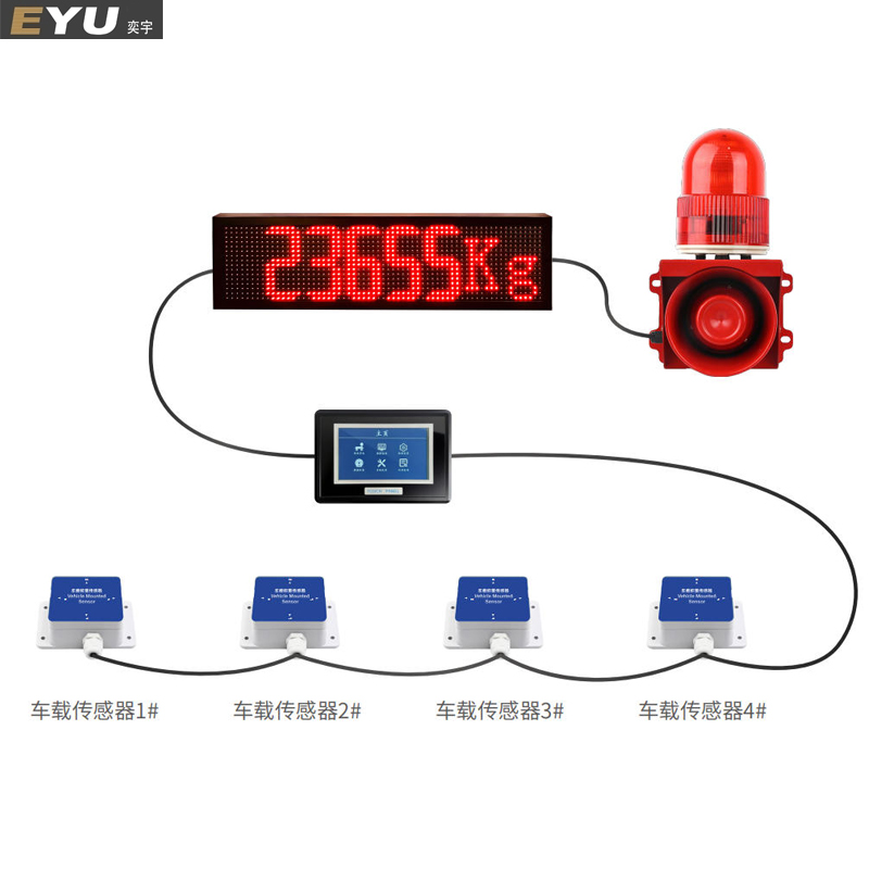 车载称重监测系统支持两级声光报警(90%载重黄灯提示、满载红闪蜂鸣),可自定义轴重与总重阈值,3通道联动外部设备。