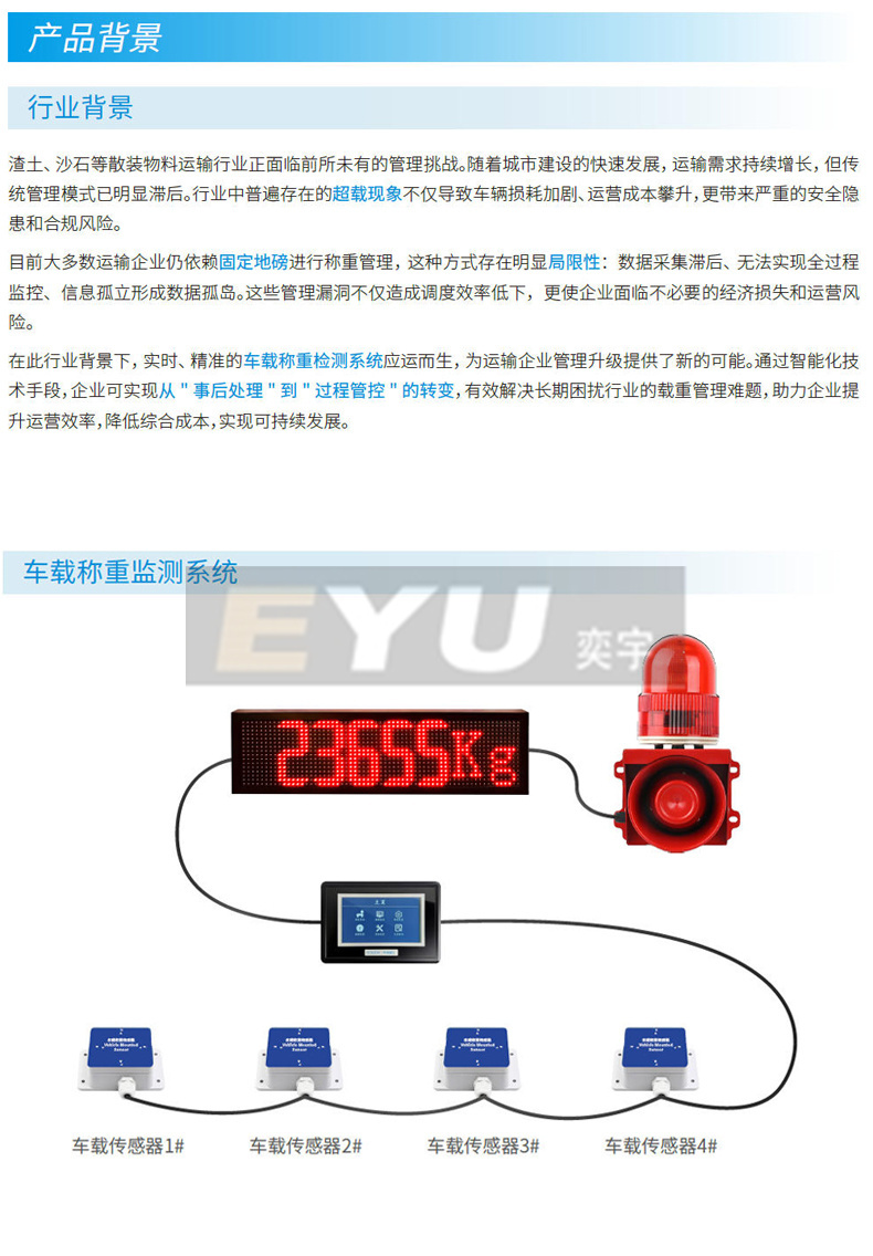 在此行业背景下,实时、精准的车载称重检测系统应运而生,为运输企业管理升级提供了新的可能。通过智能化技术手段,企业可实现从 " 事后处理 " 到 " 过程管控 " 的转变,有效解决长期困扰行业的载重管理难题,助力企业提升运营效率,降低综合成本,实现可持续发展。