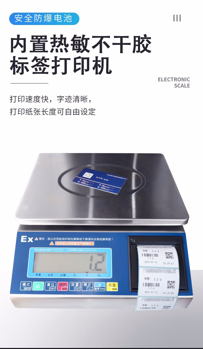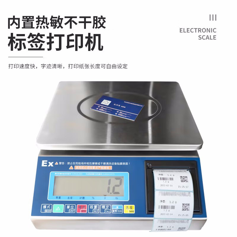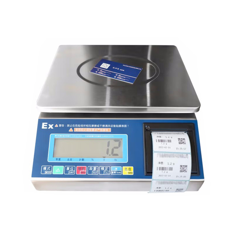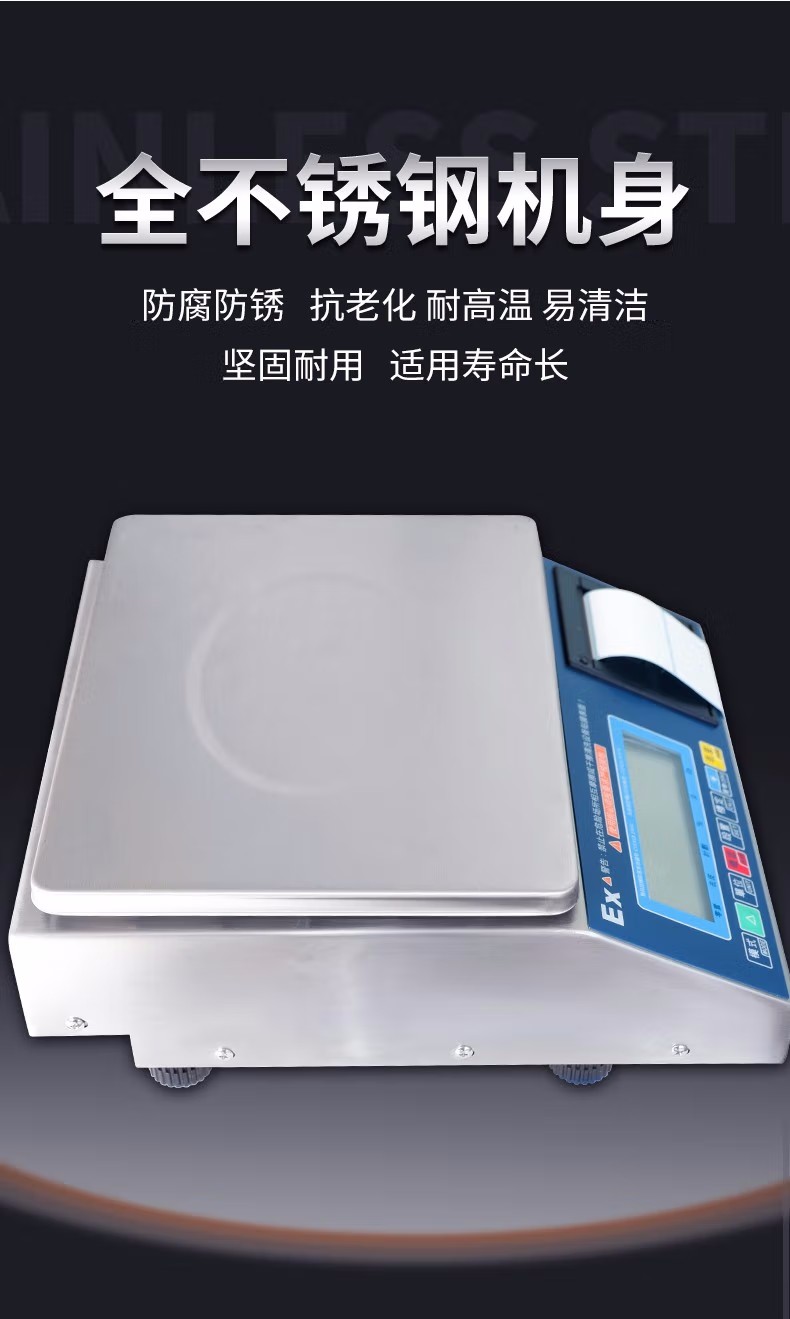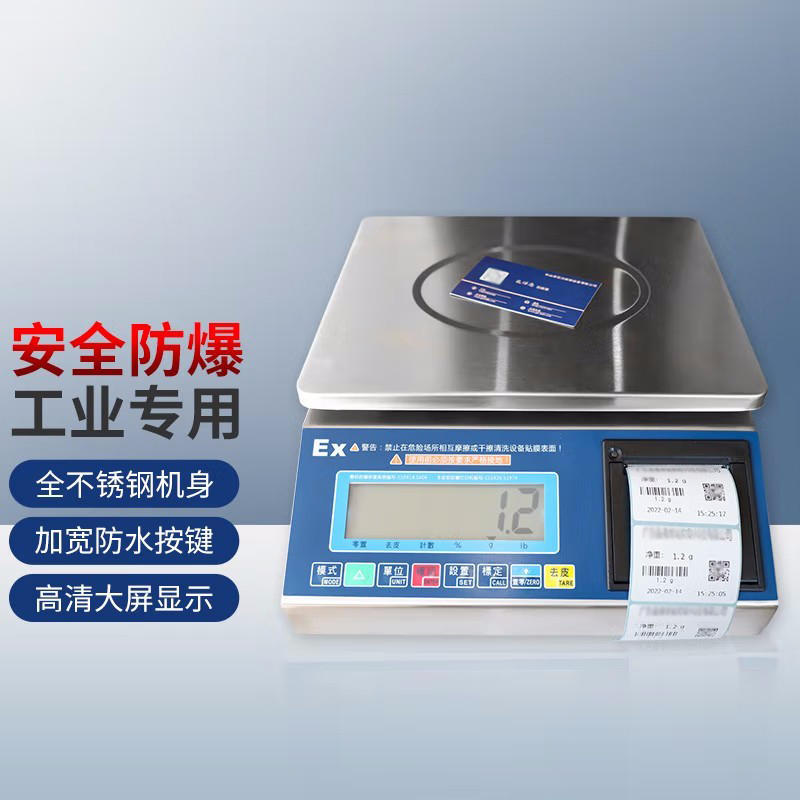 本安型防爆304不锈钢带标签打印RS232通讯报警计数桌秤天平电子秤