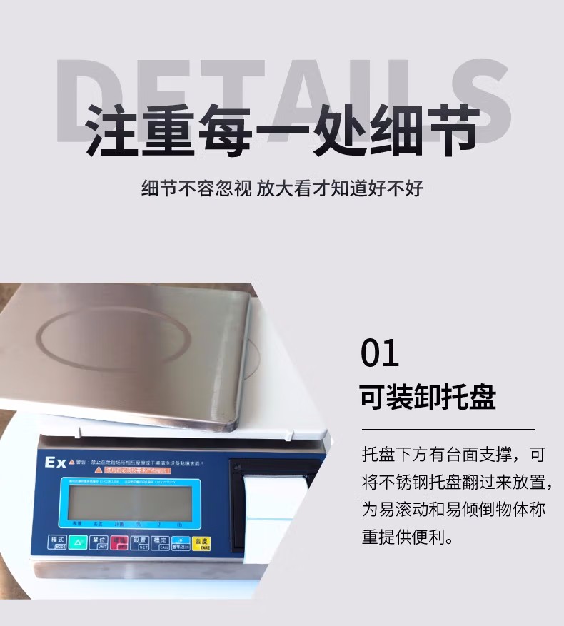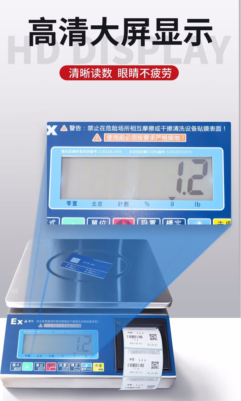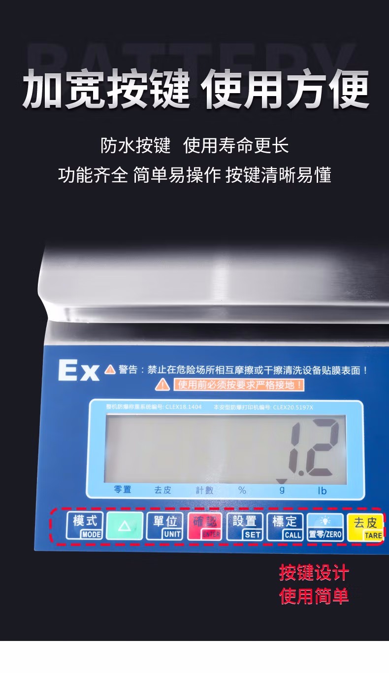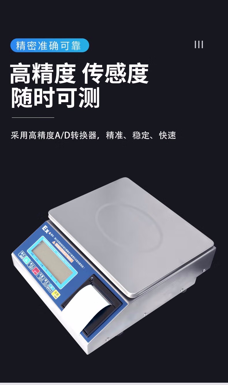 本安型防爆304不锈钢带标签打印RS232通讯报警计数桌秤天平电子秤